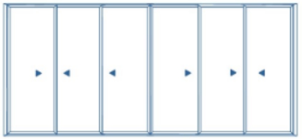 Linha de correr composta por folhas de janelas e portas para vãos com limites de tamanho.